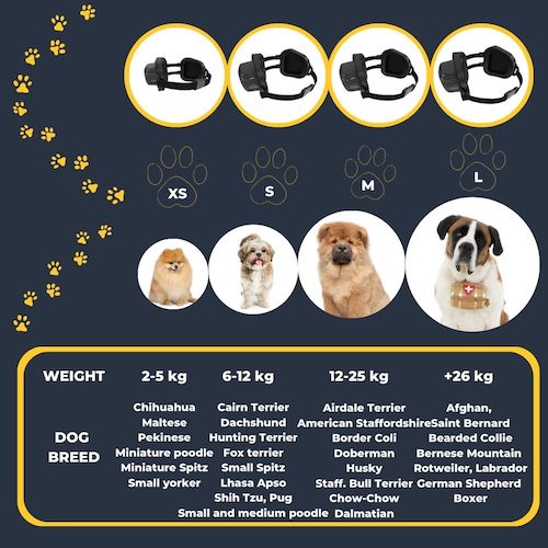 BOLLSEN Dog+ attenuates noise levels by up to 35 dB (decibels). For comparison: The difference between a construction site and a normal conversation is around 25 dB. This means that the hearing protection will ensure that your dog will only hear a whisper while your walking on a busy street.